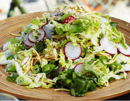 این سالاد... ادامه مطلب این سالاد کلوچه آجیل ترد با طعم تازه با کلم سفید ، هویج و تربچه تهیه شده و با پیاز سبز ، سلطان و بادام زمینی مخلوط می...کمتر بخوانید